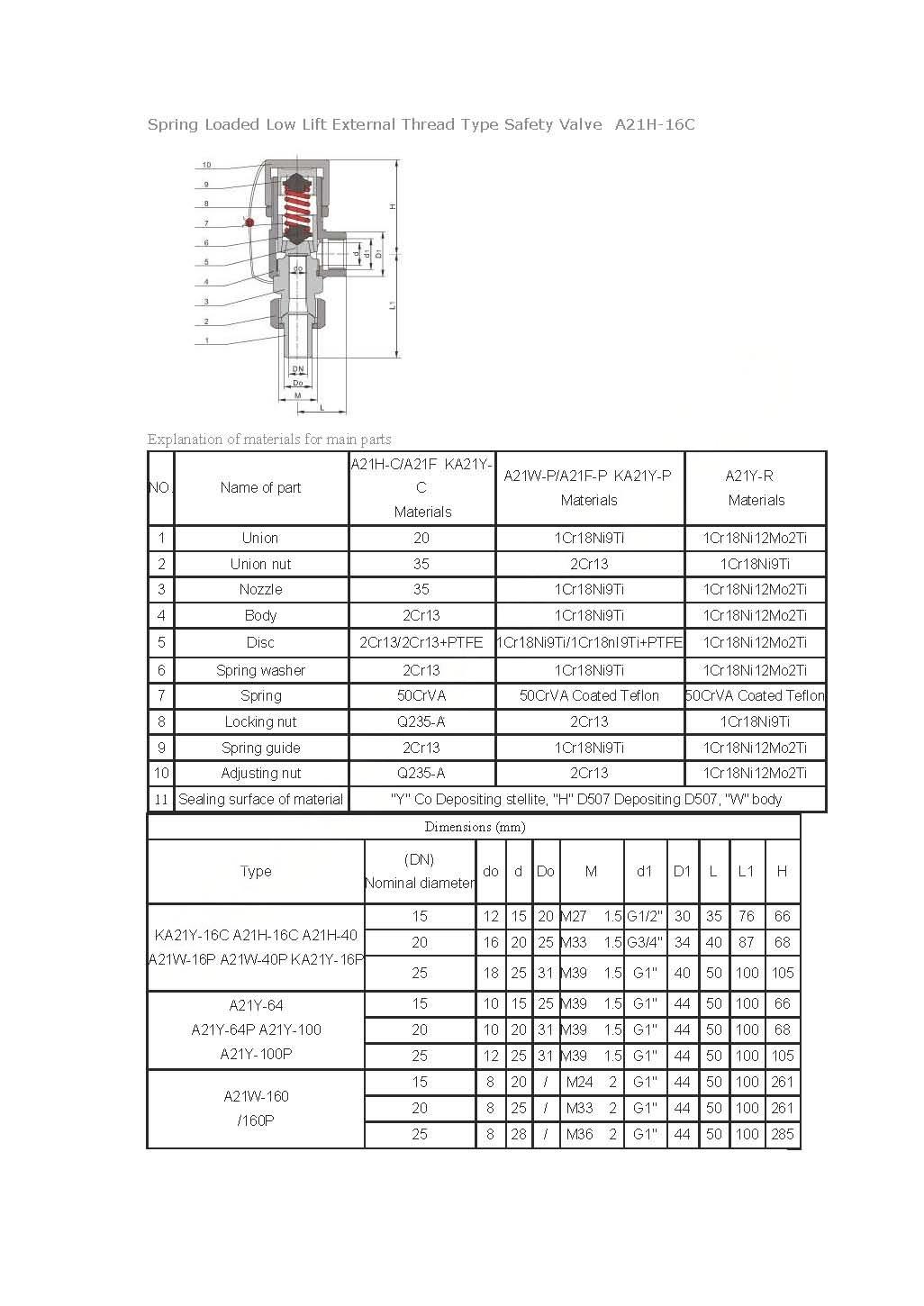 Spring Loaded Low Lift External Thread Type Safety Valve