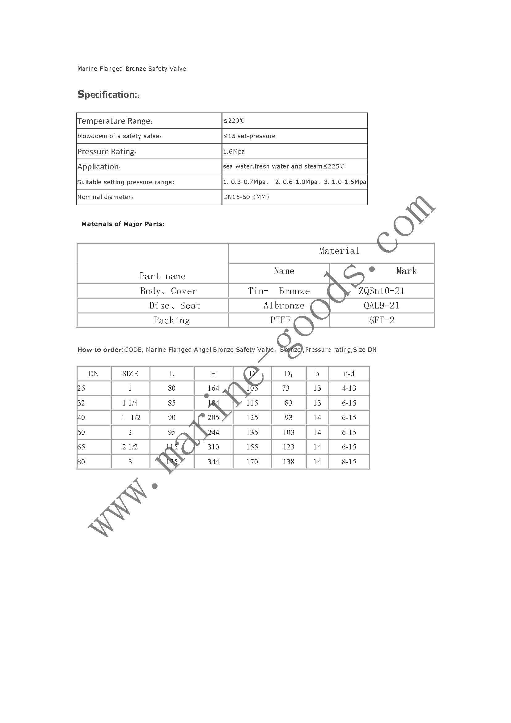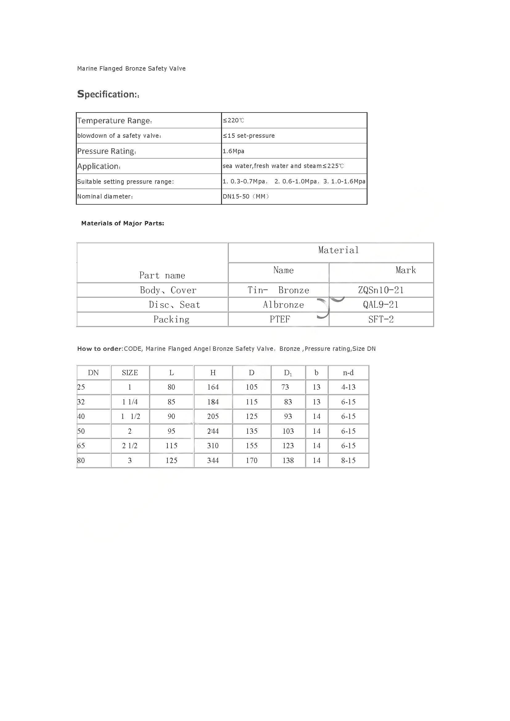 Marine Flanged Angel Bronze Safety Valve