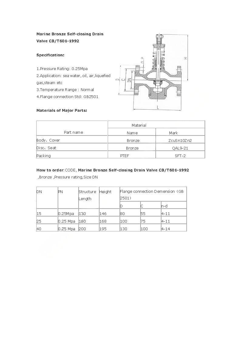 Marine Bronze Self-closing Drain Valve