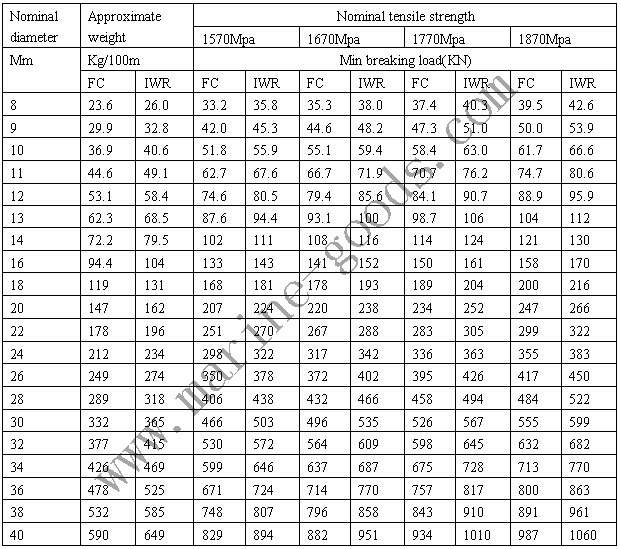 6x19+sFC 6X19+SIWR 6X19W+FC 6X19W+IWR
